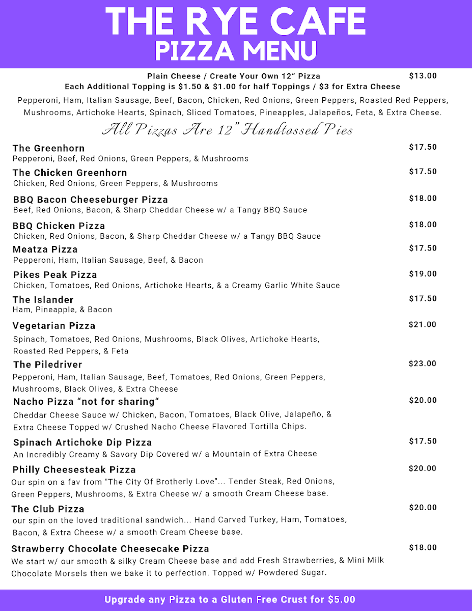 Substitute a Gluten Free Crust for any of our Pizzas for an additional $5